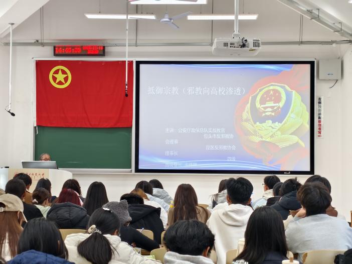 为响应反邪教警示教育‘六进’要求,筑牢青年团员思想安全防线。2025年11月13日,经济与管理学院于文馨书院C103开展了“宗教与反邪教教育”主题团课。课程邀请内蒙古自治区公安厅政保总队实战教官、包头市反邪教协会理事、昆都仑区反邪教协会理事长王伟琳老师进行授课。