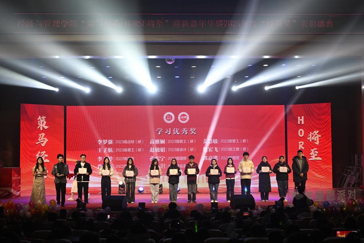 骏马踏歌辞旧岁,经管聚力启新章。2025 年 12 月 28 日,内蒙古科技大学经济与管理学院 “策马经心,HORSE 将至” 迎新嘉年华暨 2025 年度 “经英奖” 表彰盛典在学校音乐厅璀璨启幕。全院师生齐聚一堂,共赴这场融合青春活力、荣誉表彰与新年期许的年度盛会,在欢声笑语中定格美好时光,在逐梦征程上凝聚奋进力量。