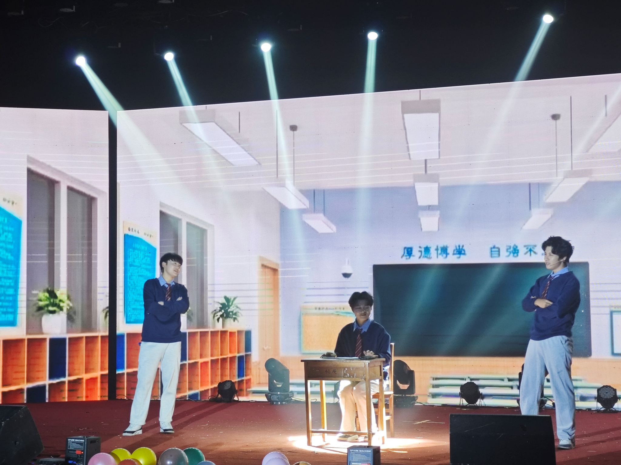 董天一、王法、吴子炎的相声《对对对》妙语连珠、包袱不断,点燃满堂欢笑;腾飞艺术团鹿鸣乐队奏响《两个恰恰好》,尽显青春活力;学院礼仪队《十二花神》翩跹而至,尽显传统风韵与现代气质的碰撞融合;康慧雯、郑媛媛等人以舞蹈《Strategy》舞动智慧节奏;范禹佳、王琳浩等演绎小品《考试最后十五分钟》,真实复刻校园时光,引发全场师生强烈共鸣;李昊洋、王穆子希等人则以《人来疯》将青春的炽热与张扬展现得淋漓尽致。
