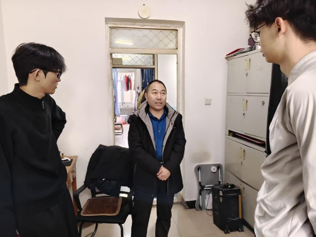 走访过程中,学院领导与老师们逐一走进各学生宿舍,与同学们亲切交流,细致询问大家的返校旅途、假期生活及新学期学习规划,认真倾听同学们在生活、学习中遇到的问题与诉求。领导老师们实地查看宿舍环境卫生、安全设施及住宿条件,叮嘱同学们尽快调整状态,收心归位,以积极饱满的精神面貌投入新学期的学习生活;同时强调要严格遵守宿舍管理规定,规范用电、注意消防安全,保持宿舍整洁卫生,营造安全、文明、和谐的宿舍环境。