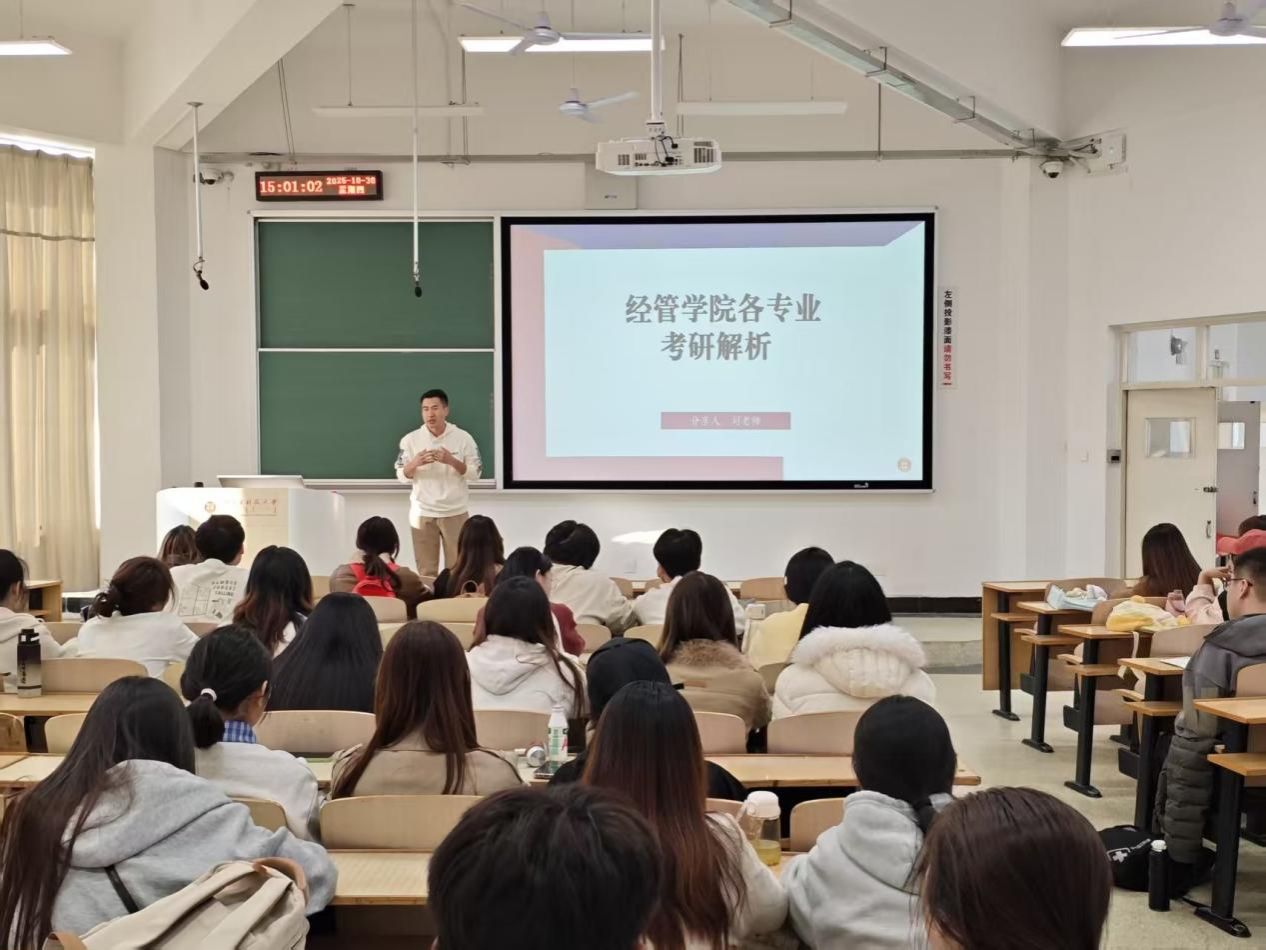 为帮助大三学生更好地规划备考路径,解答备考过程中的疑惑,提升复习效率。10月30日,经济与管理学院邀请研途机构刘宝林老师举办主题为《VACU时代下的经管人才破局:从”广谱“知识到“精准”职业定位》的考研指导讲座,大三年级各班级60余名同学参加本次讲座。