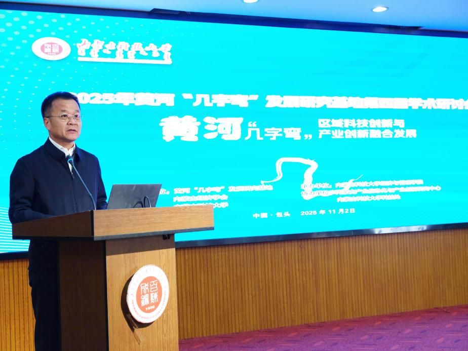 11月2日,由黄河“几字弯”发展研究基地、内蒙古经济学会、内蒙古科技大学联合主办,内蒙古科技大学经济与管理学院承办的第四届黄河“几字弯”发展研究基地学术研讨会在校图书馆B206多功能报告厅召开。本次研讨会以 “黄河‘几字弯’区域科技创新与产业创新融合发展”为主题,吸引了来自全国多所高校与研究机构的专家学者齐聚一堂,共商黄河流域生态文明建设与高质量发展大计。